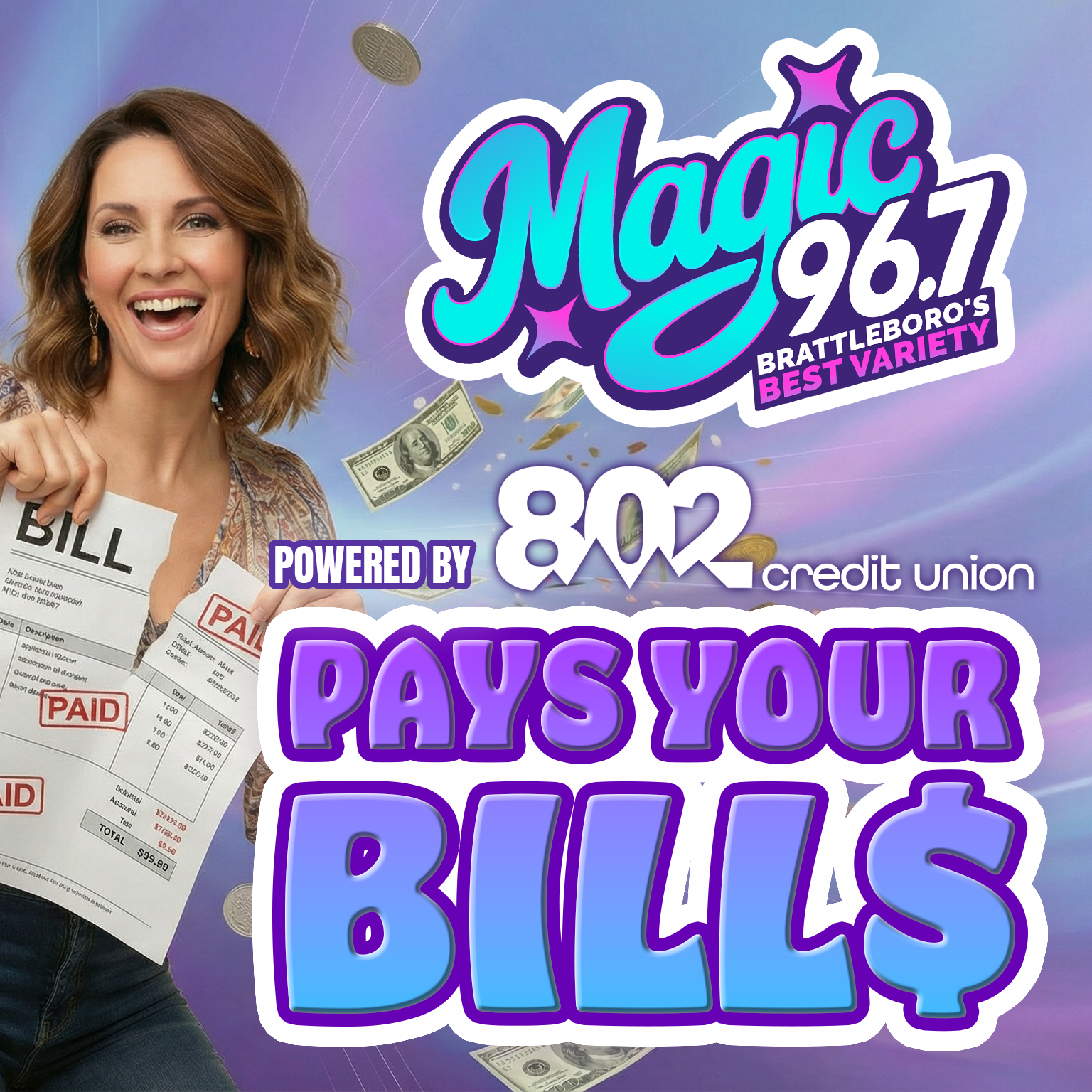 Magic 96.7 is paying your bills! Enter Magic 96.7 Pays Your Bills from January 5, 2026 through April 3, 2026 for your daily chance (Monday–Friday only) to have a bill